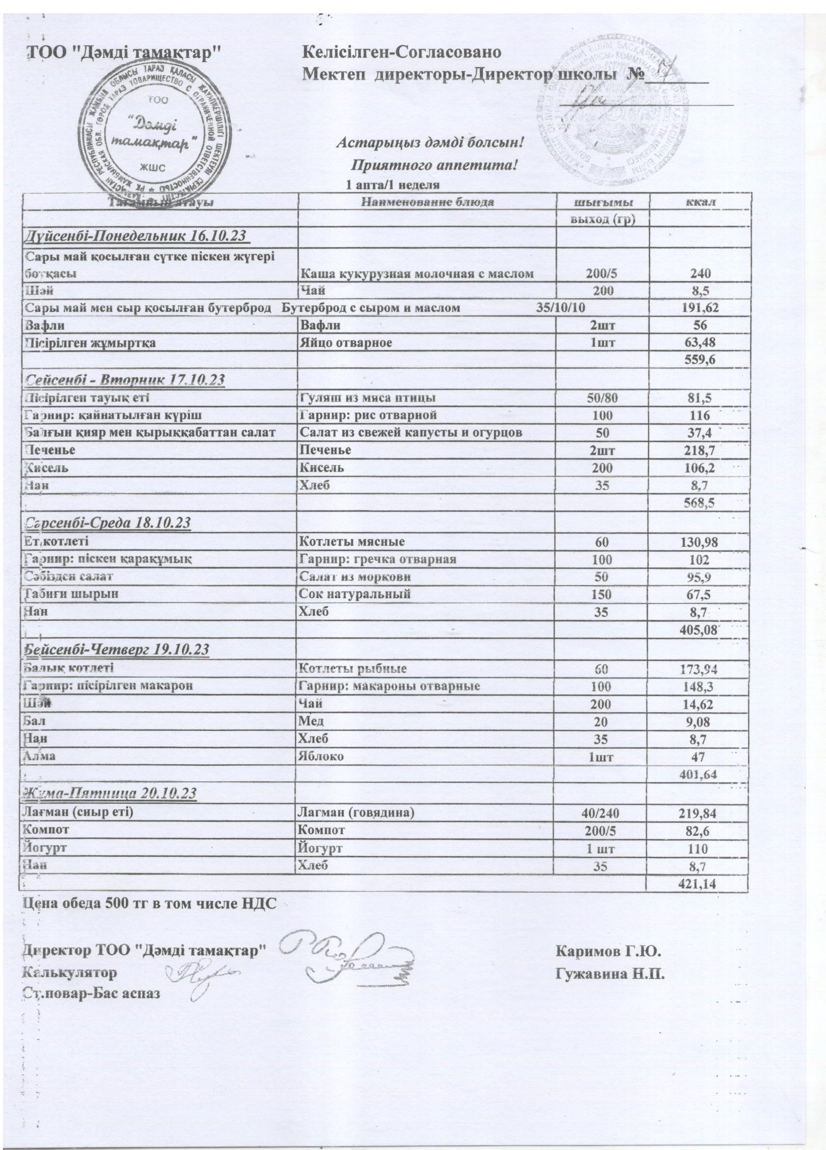 Меню на 16-20.10.2023г. » Школа-гимназия №7 г. Тараз - официальный сайт