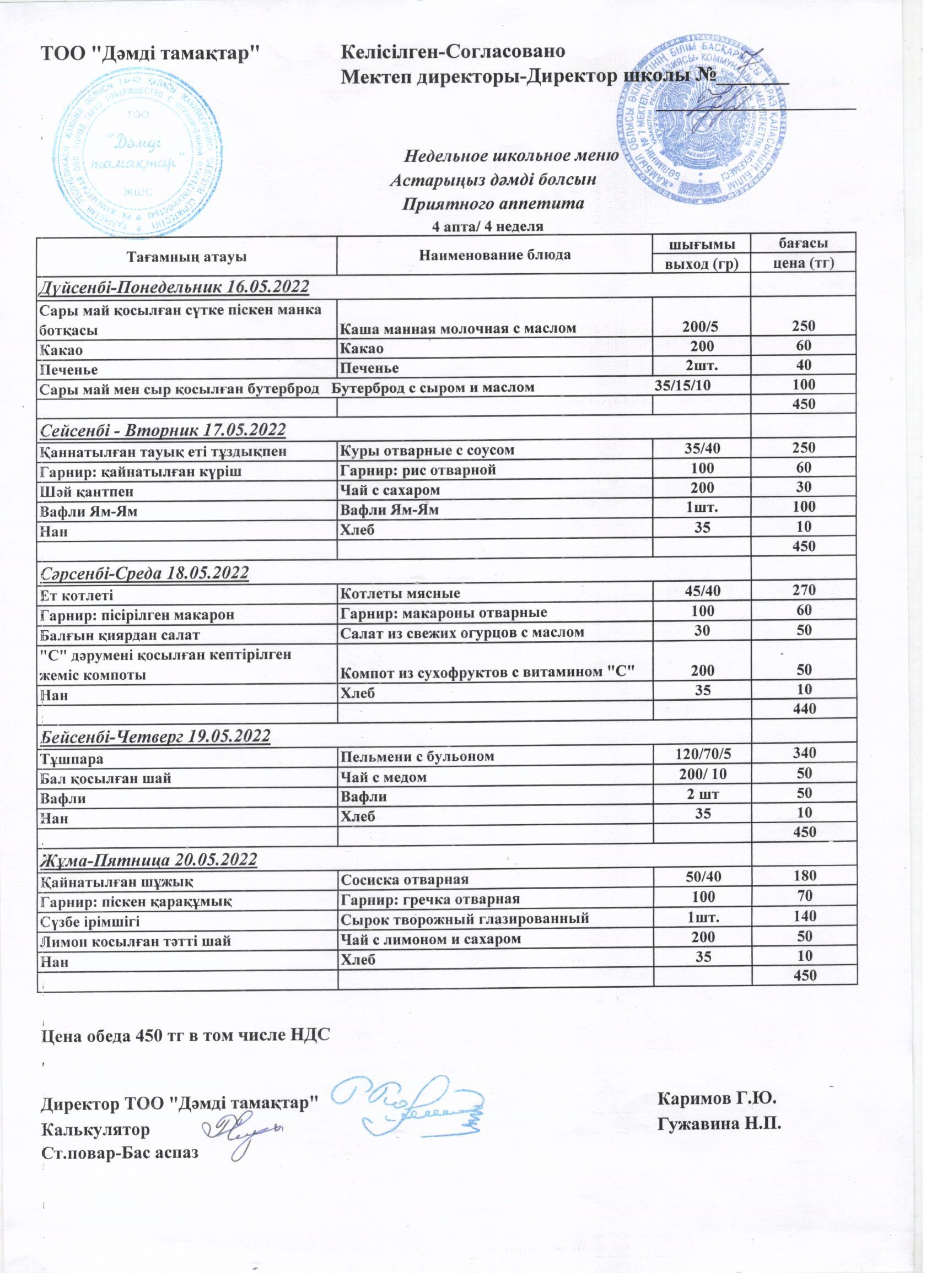 Школьное меню с 16.05.2022 по 20.05.2022 » Школа-гимназия №7 г. Тараз - официальный сайт