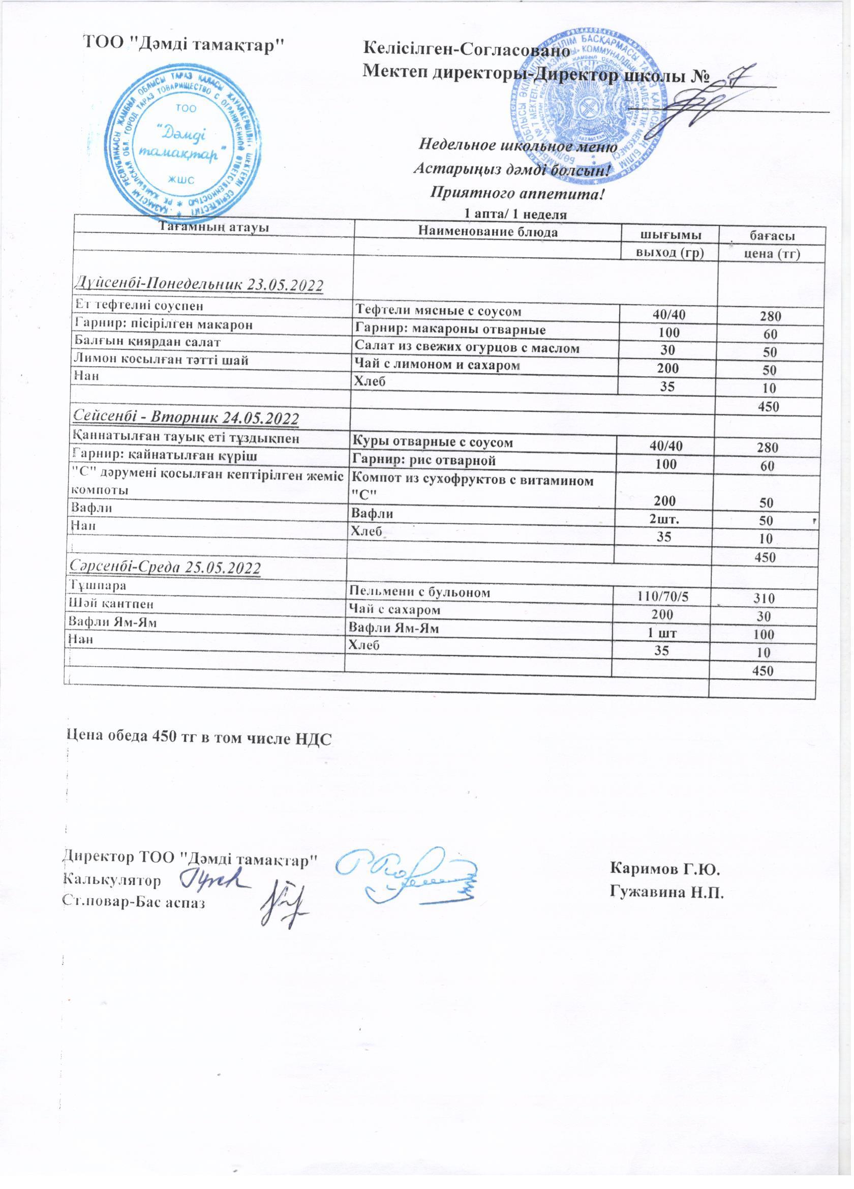 Школьное меню с 23.05.2022 по 25.05.2022 » Школа-гимназия №7 г. Тараз - официальный сайт
